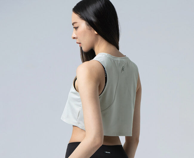 完美弧形削肩設計,展現美背線條,兼具運動休閒與時尚質感。