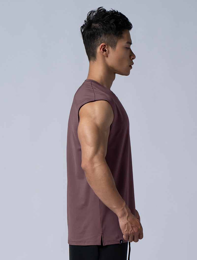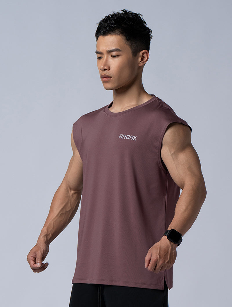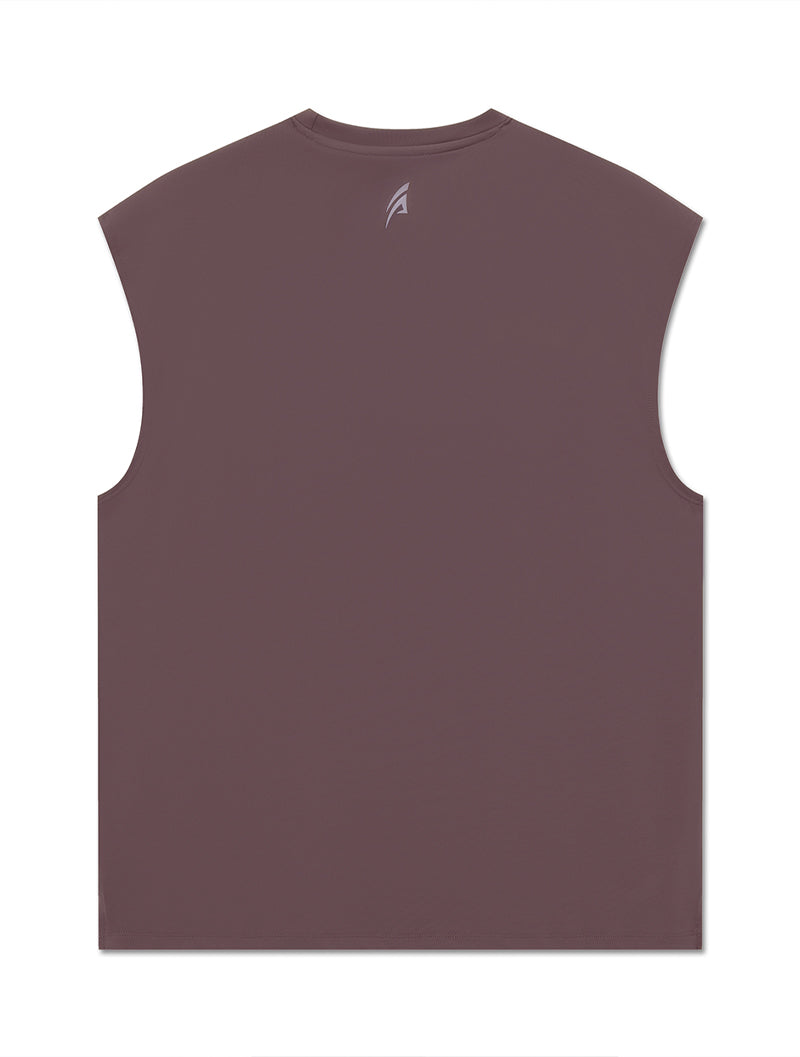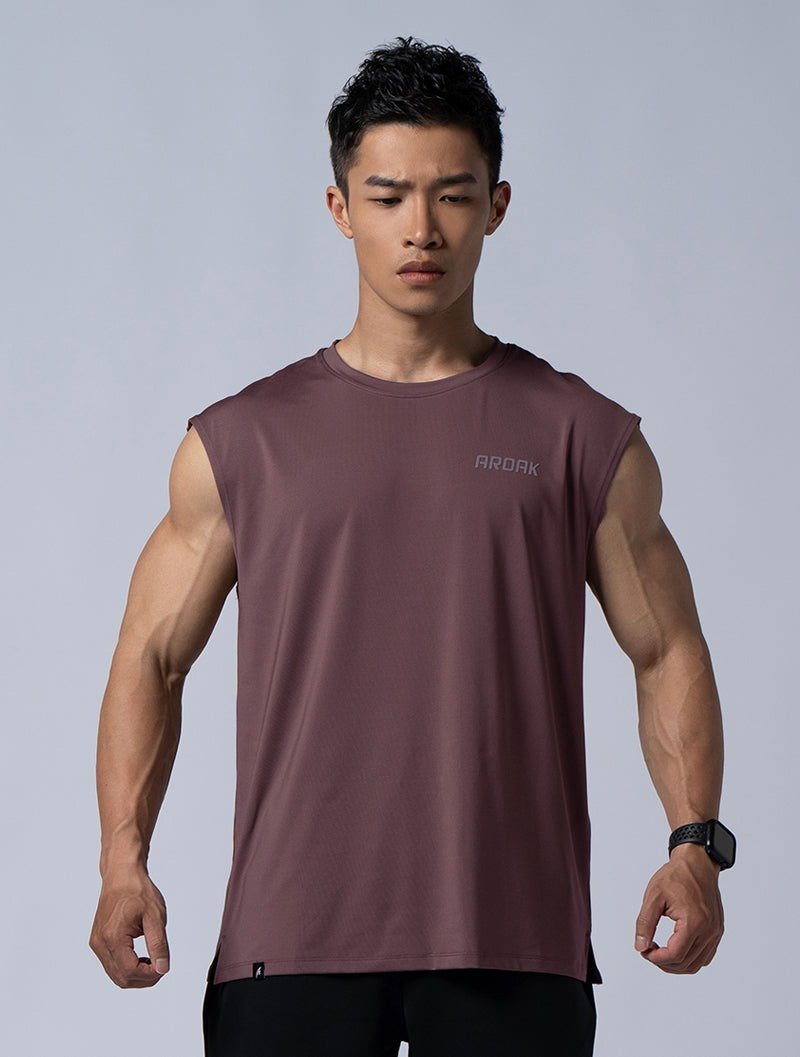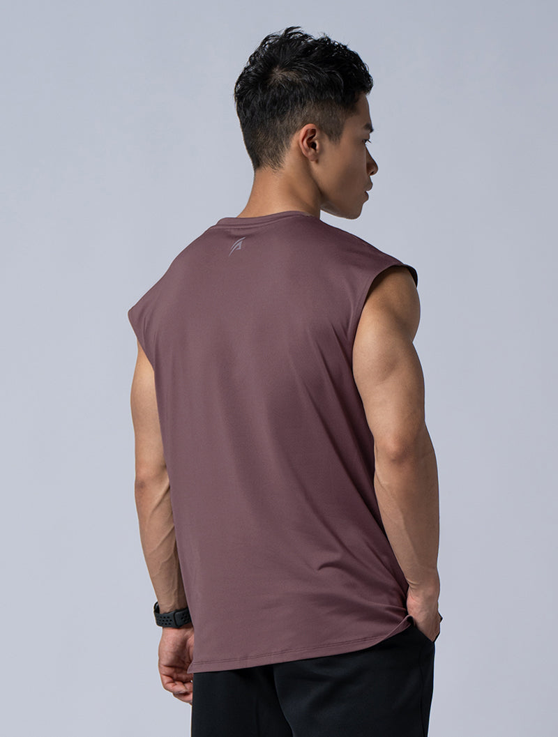 落肩無袖造型,強調突顯肩臂肌肉的呈現,展現精實壯碩的體態。利用微寬鬆的版型設計,使著穿與活動上更為舒適靈活。